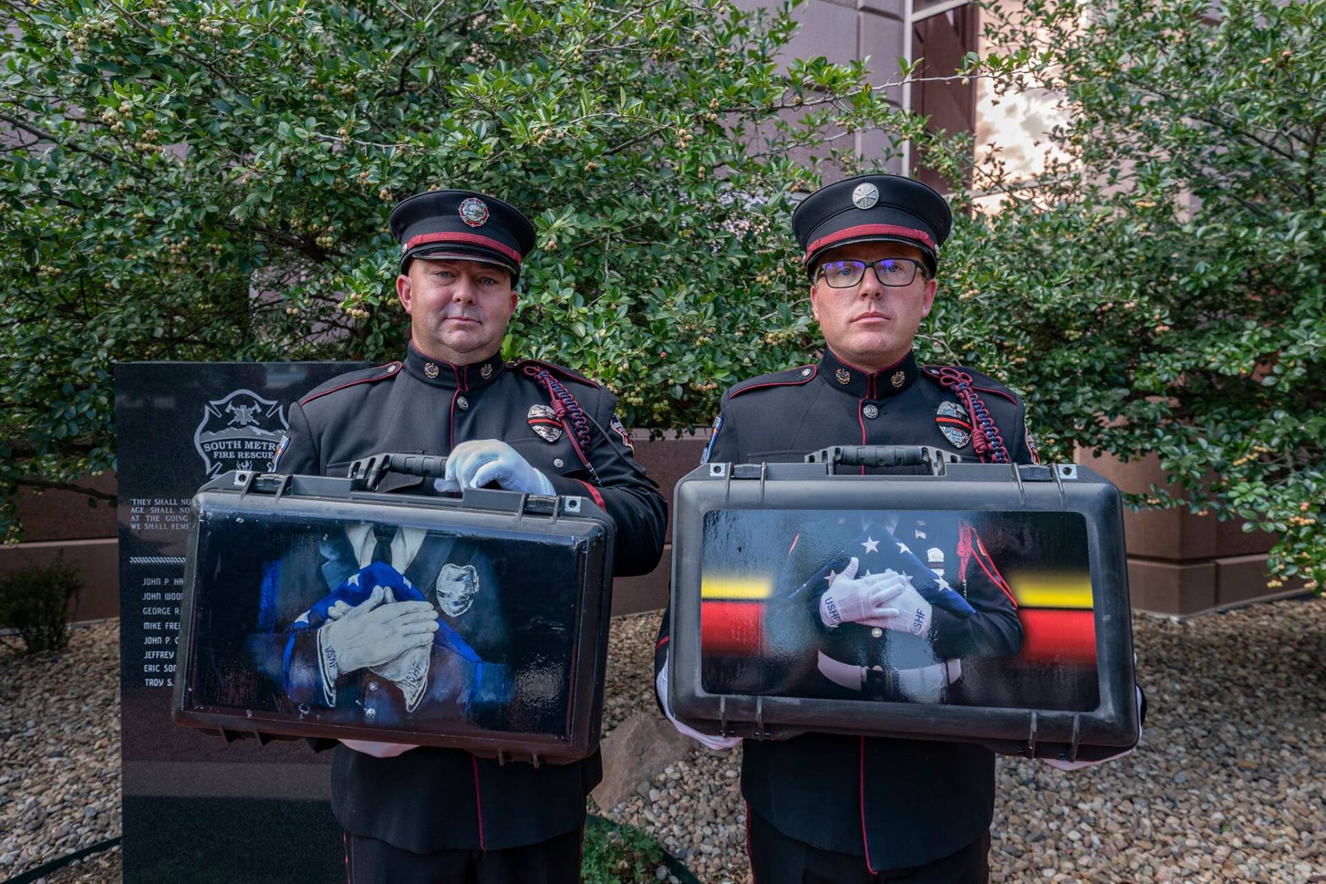 These flags traveled with Chris as he led the largest convoy of first responders in United States history to Ground Zero to provide support during that tragic event.
